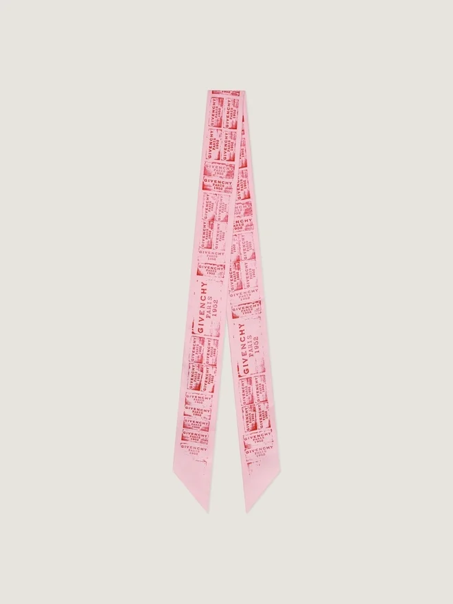 シルクツイル製のバンドゥ。Givenchy・スタンプのパッチワークプリント。端が斜めにカットされたデザイン。