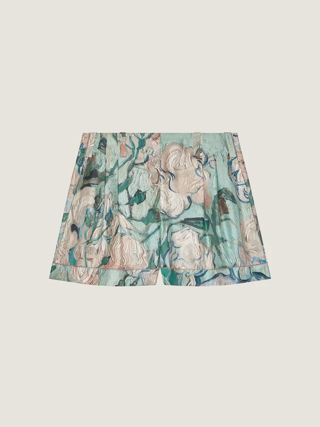 ローズプリントのシルクショーツ