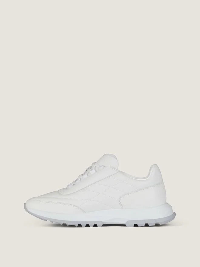 光沢のあるパッド入りレザー製スニーカー