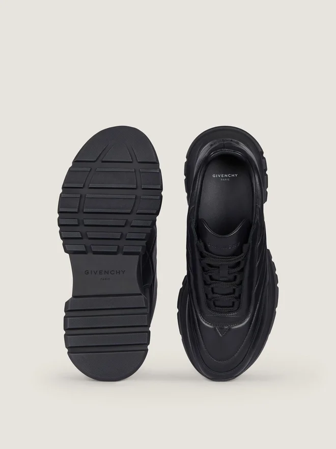 光沢のあるパッド入りラムスキン製スニーカー。トレーナーズライン。ステッチのディテール。タン部分にGivenchyのシグネチャーがデボス加工されています。Givenchyの浮き彫りロゴ