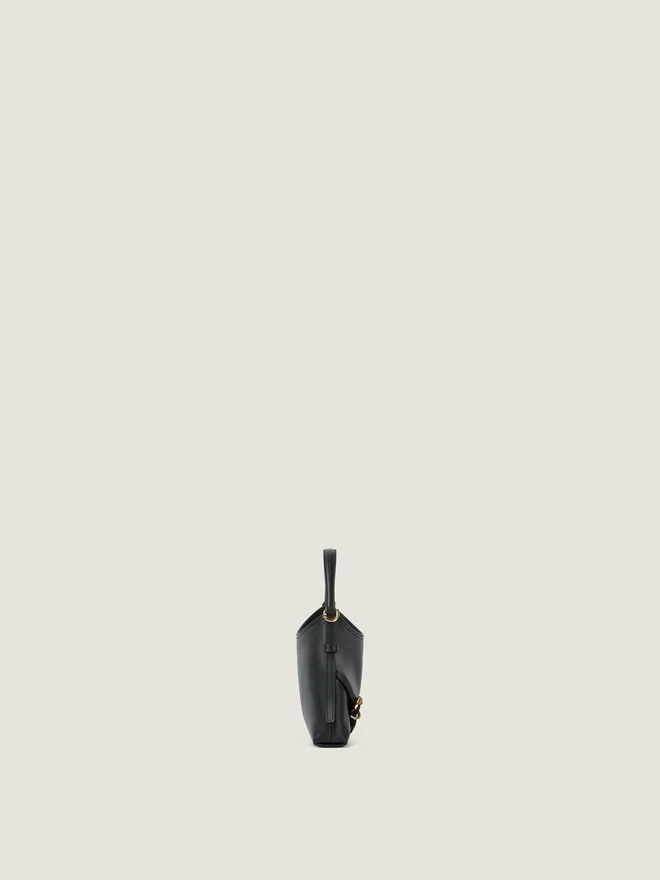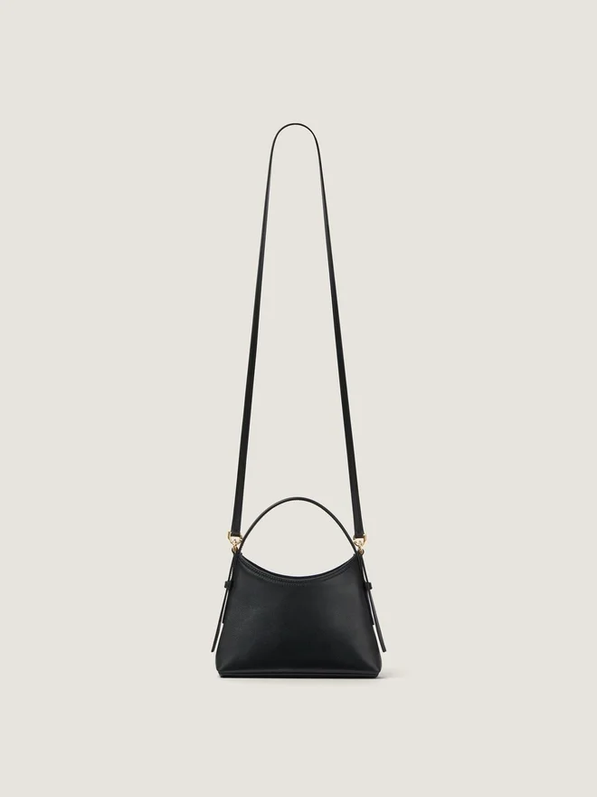 滑らかで光沢のある高級カーフスキンレザーを使用した「ナノ」ハンドバッグ。Voyou ライン。短いレザーハンドル。細身の取り外し可能なレザーストラップ