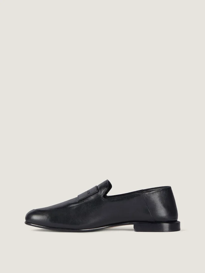 光沢のあるレザー製ラベルローファー