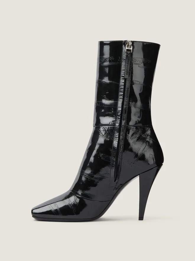 光沢レザー製 スクエアトゥ アンクルブーツ