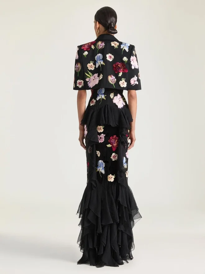 刺繍を施したウール製シングルブレスト・クロップドジャケット