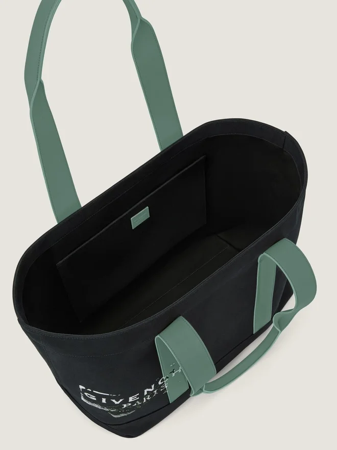 キャンバス製トートバッグ。Givenchy トート ライン。レザーハンドル。ショルダーバッグとしても、手持ちとしてもお使いいただけます。前面にGivenchyのロゴ入り。