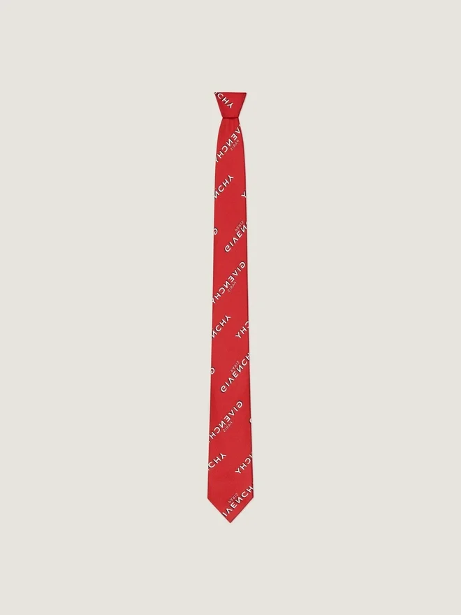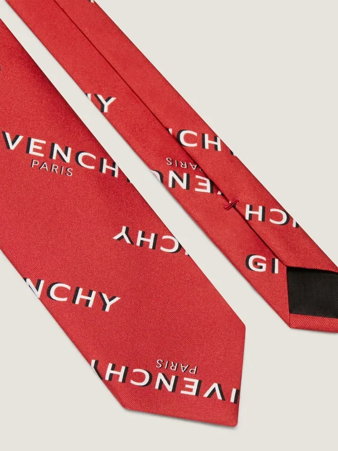 シルク製ネクタイ。Givenchy Paris シャドウ Signature Print オールオーバープリント。