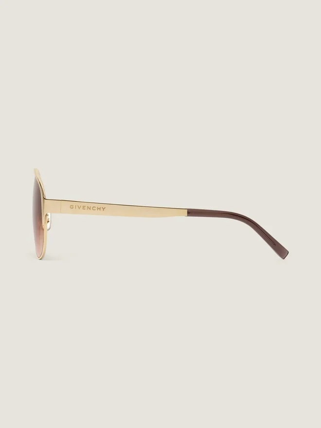 メタル製サングラス。Givenchy ボールド ライン。パイロットシェイプ。コッパーブラウンのレンズ。調整可能なノーズパッド。Givenchyのシグネチャーが刻印されています