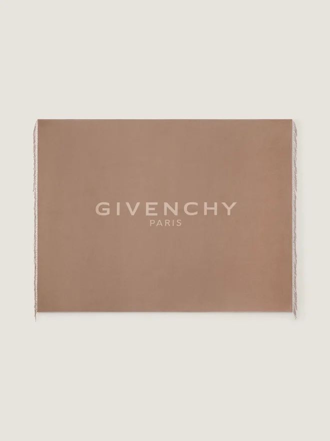 ウール製ブランケット。中央にGivenchy Parisのジャカード柄。フリンジ付き。